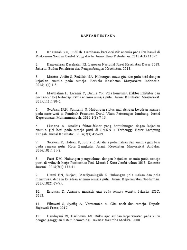 Daftar Pustaka Γ¢ Anemia Gizi Besi Pada Remaja Putri Di Smkn 1 Terbanggi Besar Lampung Pdf Document from static.fdokumen.com Jurnal nasioal anemia pada remaja. Check spelling or type a new query. Maybe you would like to learn more about one of these? We did not find results for: